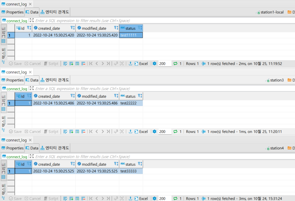- 여기서 주목할 점은 @PersistenceContext(unitName="data1EntityManager") 설정 부분이며, 각 DataCfig에서 설정한 persistenceUnit("data1EntityManager") 설정과 사용할 repo를 일치 시켜주면 됩니다.